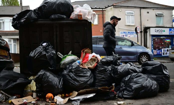 Frappée par ces dépenses monstrueuses, la ville de Birmingham a bien dû trouver des économies à faire. Or, où mieux faire tomber le couperet que sur les éboueurs, dont les avantages en matière de rémunération avaient concentré les critiques des employées municipales ? Les éboueurs, ne souhaitant bien sûr pas se laisser faire, se sont mis en grève, et la ville est devenue une telle décharge à ciel ouvert qu’en mars, ce sont dix-sept mille tonnes de déchets qui jonchaient les rues, les livrant aux rats et forçant la municipalité à déclarer un « incident majeur » la permettant de mettre en œuvre des moyens supplémentaires pour s’attaquer au problème en concertation avec le gouvernement et les communes environnantes.
