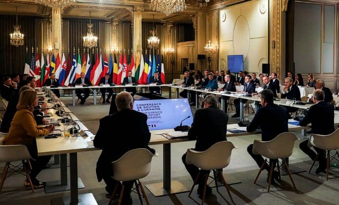 Le Président @EmmanuelMacron a réuni hier 27 chefs d’État et de gouvernement ou leurs représentants ministériels pour une conférence de soutien à l’Ukraine.