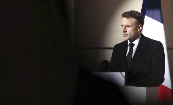 Emmanuel Macron inaugure la Cité internationale de la langue française au château de Villers-Cotterêts, 30 octobre 2023. « La question de la langue doit être prise en compte dans le cadre d’une écologie générale : sauver la culture, sauver la beauté du monde et plus que tout peut-être, sauver la langue… » Photo: Gabrielle CEZARD/SIPA