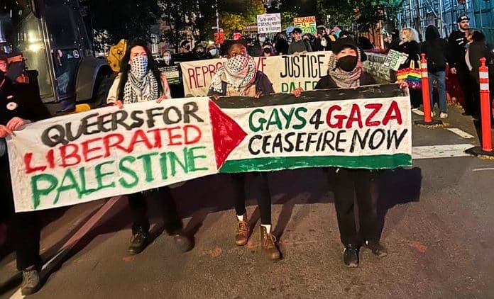 Par ailleurs, on a déjà pu l’observer, tous ces militants féministes et LGBT d’extrême gauche ne font pas que signer des tribunes ou lancer des pétitions ; ils se retrouvent aussi dans les manifestations pro-palestiniennes organisées en France et dans d’autres métropoles occidentales. Comme à New York, le week-end dernier, où des militants de « Gays 4 Gaza » et de « Queers for Palestine », portant masque sanitaire et cheveux fluo, ont défilé en brandissant des pancartes aux couleurs du drapeau palestinien et du drapeau arc-en ciel en hurlant « Free Palestine », « The occupation has to go » et « Fuck Israël », le tout ponctué de discours mobilisateurs expliquant que la lutte pour la libération de la Palestine serait la même que celle pour les droits civiques, que les Palestiniens vivraient sous occupation et subiraient une ségrégation raciale semblable à celle vécue par les noirs américains autrefois. Voilà le résultat du grand gloubi-boulga où règnent anachronismes, confusion et relativisme inhérents à l’idéologie woke. Pour ces militants, Israël représente l’Occident blanc patriarcal et néocolonial coupable de tous les maux de la Terre. Peu importe si depuis l’opération du grand démantèlement opéré par Ariel Sharon, en 2005, il n’y a plus de colonies juives dans la bande de Gaza ! Par ignorance crasse et aveuglement idéologique, ces militants ultra-« progressistes » ne se rendent pas compte qu’ils soutiennent en réalité ceux qui seraient leurs potentiels bourreaux s’ils vivaient à Gaza. Ils sont loin de réaliser qu’ils ne sont que les idiots utiles du terrorisme islamiste, qui se sert d’eux pour montrer aux peuples du « Sud global » à quel point l’Occident sombre dans la dégénérescence ou légitimer la charia comme une fantastique barrière imperméable à ce qu’ils considèrent comme de la dépravation.