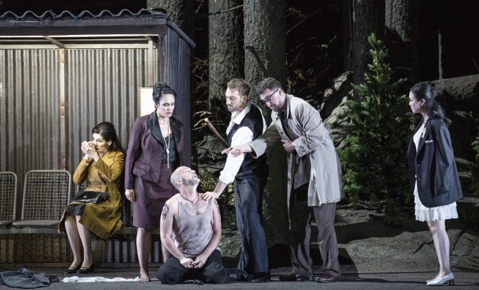 Troisième reprise d’une production millésimée 2019, la mise en scène inventive et minimaliste de Damiano Michieletto transpose l’action à l’époque du smartphone, des incrustations d’images sur fond vert et des intérieurs high tech. Don Pascuale partage avec sa bonne un « ça m’suffit » à l’ameublement plouc à souhait, que son épouse toute neuve, Norina, dissimulée sous le pseudonyme de Sofronia pour se transformer illico en harpie dissipatrice, réaménagera en loft dispendieux. Meurtri, humilié, pressuré, le mari ne songe plus dès lors qu’à se débarrasser de cette mégère : le but est atteint ; le stratagème aboutit à un mariage plus « décent » : entre jeunes gens. La morale est sauve.