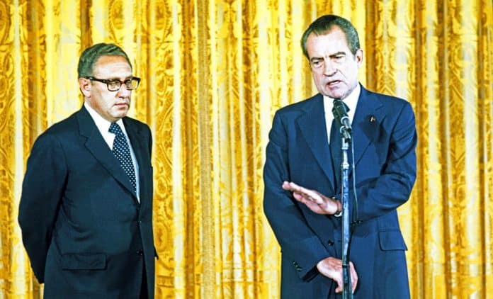 Quand Gerald Ford succède à Richard Nixon, la présence d’Henry Kissinger au gouvernail de la diplomatie est un atout et un gage de continuité.
