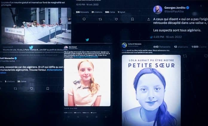 L’introduction au documentaire faite par Karim Rissouli, sans emphase et tout en sobriété, donne immédiatement l’air de la chanson. L’Affaire Lola est un « triste modèle, mais un modèle parfait de manipulation et de récupération politique d’un crime atroce qui aurait pu, aurait dû, rester un terrible fait divers. » Il a « réveillé le fantasme d’une immigration incontrôlée et meurtrière. » Alors, « une armée numérique d’extrême droite, la fachosphère, a réussi à imposer son idéologie et ses théories complotistes dans le débat public. » Après cette captatio benevolentiae de choc, place au documentaire, tout aussi impartial.