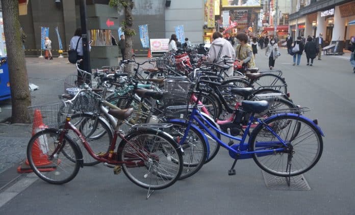 Regardez bien la photo ci-dessus : les vélos abandonnés par leurs propriétaires sont alignés sans antivol, toute la journée, dans les galeries commerciales d’Osaka. Le soir, les cyclistes retrouveront leurs montures intactes : il n’y a pas de vol au Japon. Ni rien de cette petite délinquance qui use les nerfs de nos concitoyens. Je vais tenter de vous expliquer pourquoi.