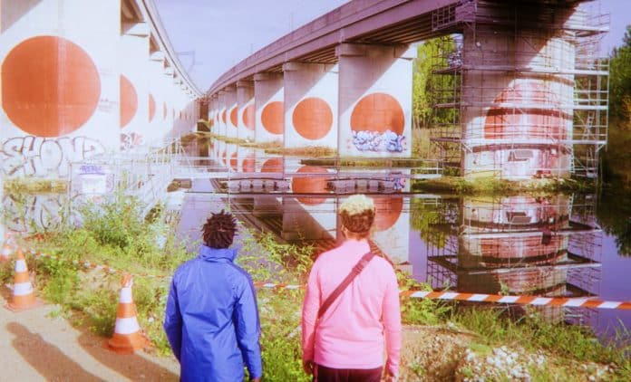 Voilà ce qui s’appelle un « film d’auteur ». Comédien, scénariste, réalisateur, le tout jeune et bien doué Martin Jauvat s’est déjà fait connaître par deux courts métrages, Mozeb, et Les vacances à Chelles. Pour son premier « long », ce natif de la banlieue reste en terrain connu: ce qu’il est convenu d’appeler emphatiquement le Grand Paris – le titre vaut programme. Une paire de branques issus du 93, Leslie (Mahamadou Sangaré) et Renard (Martin Jauvat), meilleurs potes et glandeurs intégraux, se retrouvent à poireauter dans la petite gare de Saint-Rémy-les-Chevreuse, chargés d’un deal médiocre qui part en eau-de-boudin. Amorce, pour les deux lascars (le premier, noir à dreadlocks en survet à l’enseigne du « Grand Paris », le second, blanc-bec binoclard, brun aux mèches jaune canari) d’un périple en grande couronne, qui les conduira de l’arrêt La Hacquinière, à Bures-sur-Yvette, dans les Yvelines, jusqu’à Cergy-Pontoise et son fameux Axe majeur, en passant par les Lilas, Romainville et sa tour, et autres stations peu engageantes : dérive d’un jour et d’une nuit, ponctuées de rencontres improbables, dans ce territoire dénaturé de l’Ile-de-France investi par le tentaculaire chantier périurbain du « Grand Paris Express », la future ligne de métro sensée connecter entre elles les périphéries sans cesse extensibles de la capitale. De la banlieue, il va sans dire que nos deux compères ont l’idiome classique en bouche à chaque réplique (« ma gueule », « frérot », « de ouf », « j’suis grave chaud », etc.). Sur ce registre, il faut reconnaître au film un vérisme croustillant.