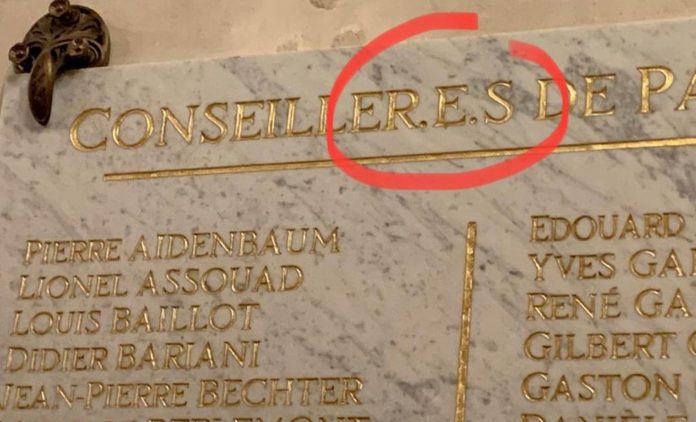 La mairie de Paris n’en a fait qu’à sa tête. Alors que le tout nouveau gouvernement avait banni l’écriture inclusive des documents officiels en 2017, c’est avec ébahissement que des élus de l’opposition ont découvert le mois dernier une plaque d’or rendant hommage aux présidents du Conseil et aux conseillers de Paris ayant effectué plus de vingt-cinq ans de mandat, dans la galerie du Conseil, retouchée à l’écriture woke. De quoi susciter de vives contestations.