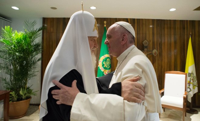 La rencontre entre le pape François et le patriarche de Moscou Cyrille à La Havane a fait du 12 février 2016 (fête de Notre-Dame de Lourdes !) une date historique. Ces deux autorités chrétiennes, les plus considérables qui soient dans le monde, ne s’étaient en effet jamais rencontrées depuis que tsar Boris Godounov avait instauré le patriarcat orthodoxe de Moscou en 1589.