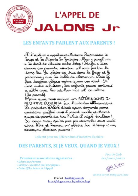 L’APPEL DE JALONS Jr : LES ENFANTS PARLENT AUX PARENTS !