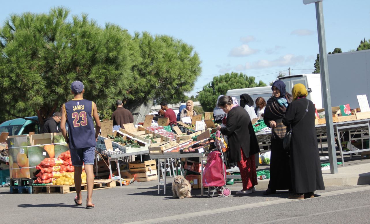 Comme pour donner corps à ces craintes, le marché du Bas-Vernet semble droit sorti du site Fdesouche : des mères de famille presque toutes voilées font leurs emplettes parmi les étals de fruits, légumes et… foulards islamiques. De jeunes Gitans s’amusent au voisinage de barbus. C’est dans ce bouillon de cultures que le sondeur et politologue Jérôme Fourquet a détecté un « effet de lisière »[tooltips content=’« Les ressorts du frontisme à Perpignan » in Karim vote à gauche et son voisin vote FN, L’Aube, 2015.’]5[/tooltips] en vertu duquel le vote FN progresse dans les bureaux de vote où se croisent immigrés du parc HLM et petits Blancs des zones pavillonnaires. Au sud et à l’est de la ville, pourtant à l’abri de l’immigration massive, prévaut en revanche un « vote préventif et ségrégationniste » en faveur du Front national, car les citadins craignent l’insécurité culturelle de ces quartiers dits populaires. Sans l’approuver, Fouzi Bouhadi comprend la mécanique d’autodéfense qui conduit au vote frontiste. Cerise sur le ghetto, ce républicain convaincu me fait visiter une cité HLM tout équipée, avec mosquée intégrée. Atterré, il s’alarme d’un « islamisme latent » sur lequel les pouvoirs publics fermeraient les yeux pour acheter la paix sociale. « Ici, c’est le Maghreb en matière de gouvernance ! » se lamente-t-il avant de me confier avoir perdu un frère pendant la décennie noire en Algérie.