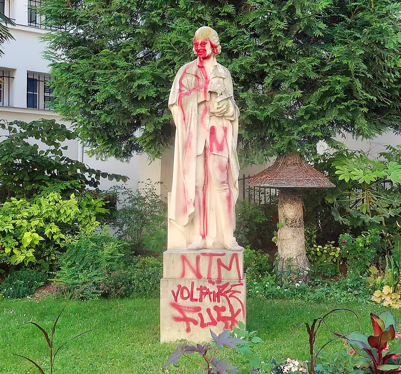 En 2019, en pleine vague mondiale de déboulonnage de statues, dans la foulée des Black Lives Matter, la mairie de Paris a courageusement exfiltré l’effigie de Voltaire, square Honoré-Champion, à deux pas de l’Institut. Le philosophe avait été aspergé de peinture rouge. Restaurée, sa statue n’a pas retrouvé sa place : la Mairie veut, par faiblesse, l’isoler derrière les grilles aveugles de l’École de médecine.