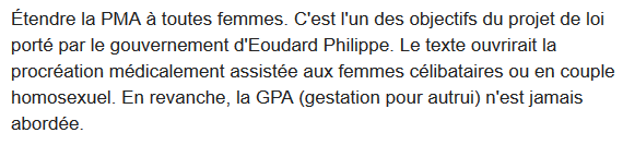 « Eoudard »… Je ne lui jetterai pas la pierre, et c’est mignon. Ce qui est intéressant, c’est que le texte choisit de présenter une relation d’opposition, souligné par « en revanche », alors que le rapport logique aurait pu être de type concessif: « bien que le texte ouvre la procréation aux femmes etc., la GPA, elle, n’est pas abordée ». Autrement dit, avant même de céder la parole à la spécialiste, la journaliste exprime déjà le point de vue que celle-ci va défendre, qui repose sur la distinction radicale entre les deux méthodes de procréation. Si on l’en croit, elles n’ont rien à voir, ce sont deux choses totalement différentes; en outre, l’une est mentionnée…