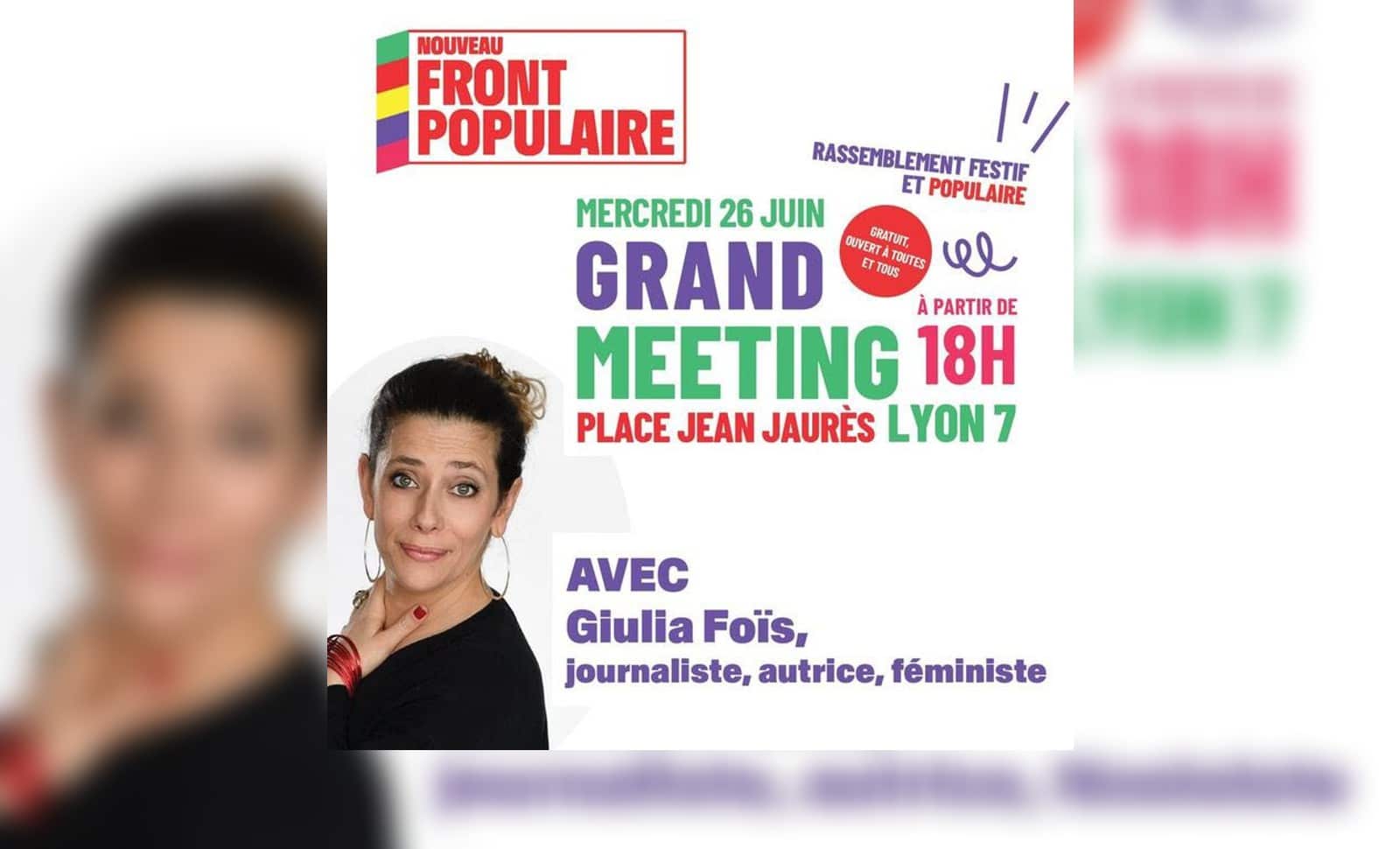 Giulia Foïs a finalement renoncé à sa venue au meeting du NFP. Toutefois, Libé a eu connaissance du texte que la journaliste comptait lire lors de cette réunion. Une critique de la détérioration du débat public et de l’ascension de l’extrême droite en constituait, parait-il, l’essentiel. Mais, affirme la journaliste, cela ne relevait d’aucun militantisme. Elle voulait seulement « souligner la nécessité d’un monde plus inclusif » et déplorer qu’on ait « réussi à faire croire que le RN est un parti comme les autres ». Mélange désolant d’arrogance et de naïveté.