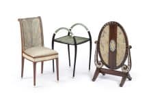 Chaise et table à journaux de Clément Rousseau (1872-1950), décorateur et pare-feu de Clément Mère (1861-1940), décorateur, Chartier, ébéniste © Les Arts Décoratifs / Christophe Dellière