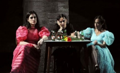 Sur la scène, trois femmes : une en noir, une en bleu, une en rose. Les robes ressemblent à ces minables déguisements de princesse propre à nous convaincre que décidément les contes de fée, c’est pas la vraie vie.