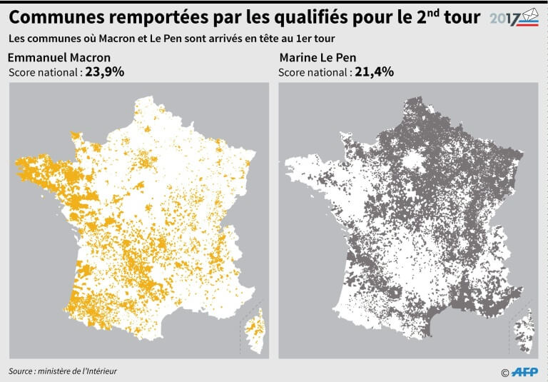 En 2017: Marine Le Pen = 21,4 %