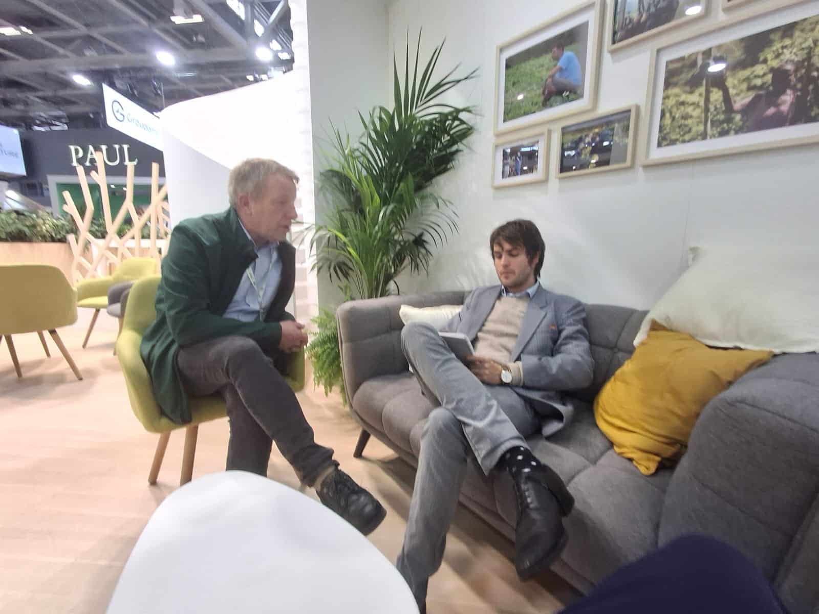 Ni ZAD, ni banquet gaulois, le stand de la FNSEA a, lui, des airs de hall de startup. Nous sommes reçus avec un verre d’eau citronné (dernier contact de la journée avec des molécules non-alcooliques). Arnaud Rousseau, le président, se fait attendre des journalistes. Il descend enfin, pose pour les photographes et remonte. Nous aurons droit finalement à son numéro deux, Luc Smessaert.
