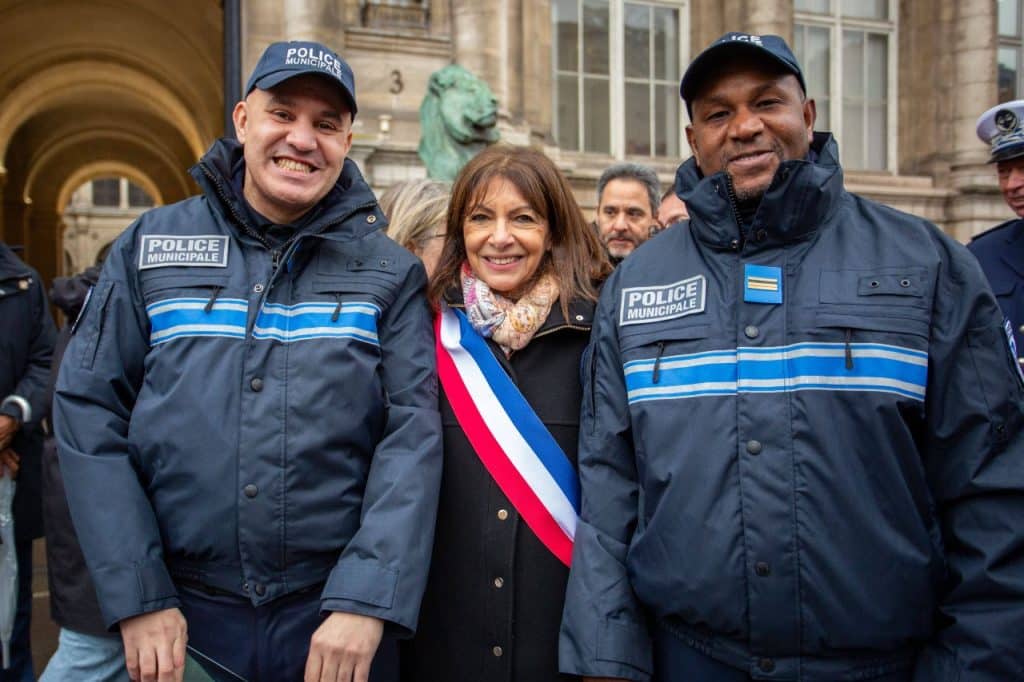 Anne Hidalgo lors d’une cérémonie marquant le quatrième anniversaire de la police municipale parisienne, Paris, 28 novembre 2025. (C) Franck Derouda/SIPA