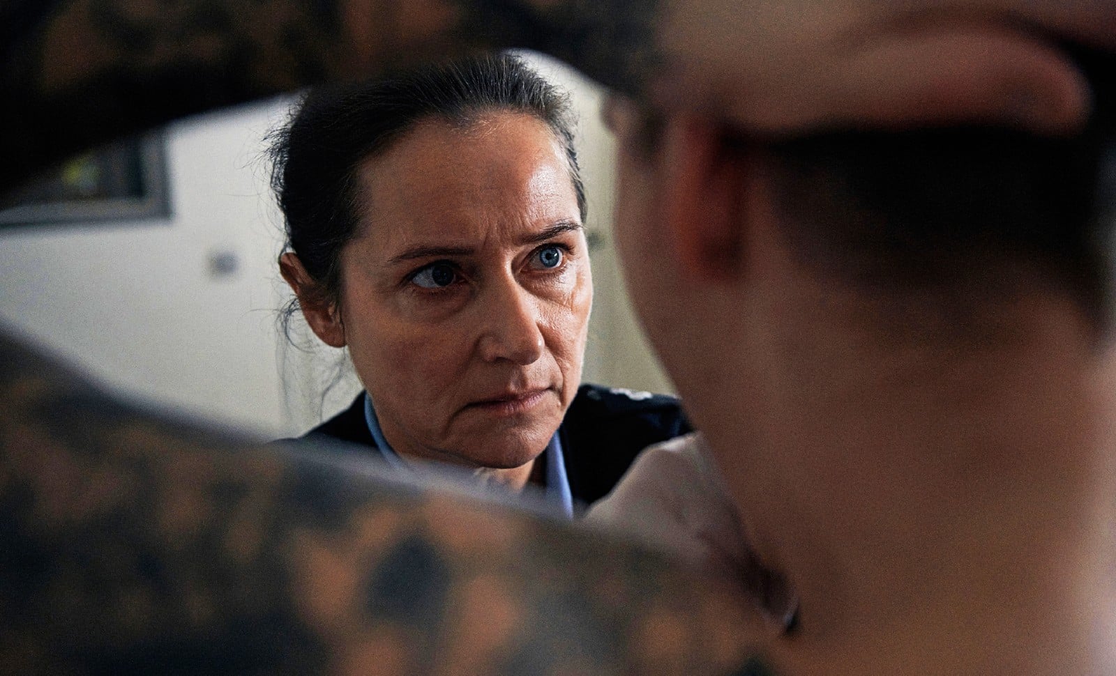 Le film dure déjà depuis une bonne demi-heure lorsque le spectateur, captivé dès la première image, commence à entrevoir ce qui se joue dans la cervelle d’Eva, cette gardienne de prison paradoxalement maternelle et glaçante, secourable et opaque, bizarrement troublée par l’arrivée d’un jeune détenu, menottes aux poignets, dont la pâleur nordique et le visage glabre contraste avec la bigarrure majoritairement exogène de la population carcérale – en cela la réalité danoise n’est pas sans en rappeler une autre, géographiquement plus familière…