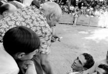 Lors d’un entretien, Bataille met ses pas dans ceux de Nietzsche, et aggrave son cas : « Nietzsche, affirme-t-il, proteste contre l’assignation d’un but aux choses, contre l’assignation d’un but au monde. Pour lui le monde n’a pas de but et, par conséquent, qu’est-ce qui nous reste possible ? C’est de rire de ce qu’il est. » Dans la France de Macron, c’est carrément blasphématoire. Ça mérite une descente de flics avec mise au trou direct.