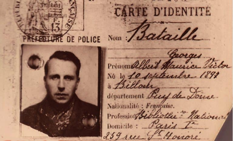Bataille a écrit des textes iconoclastes et érotiques d’une grande force ébranlante. Quand on regarde quelques-unes de ses photos, on lui donnerait le bon Dieu sans confession. Regard doux, cheveux blancs bien lissés, costume gris anthracite, chemise blanche, cravate noire, allure de notaire de province. Et pourtant, il n’y a pas plus coupable que lui. Coupable car écrivain. Bataille : « Écrire est tout de même faire le contraire de travailler. » Ou encore, plus direct : « Il me semble que si la littérature s’éloigne du mal, elle devient vite ennuyeuse. » On aimerait que les écrivains contemporains tiennent compte de cette remarque. Ça éviterait de lire des trucs insipides qui nous tombent des mains au bout de quelques pages.