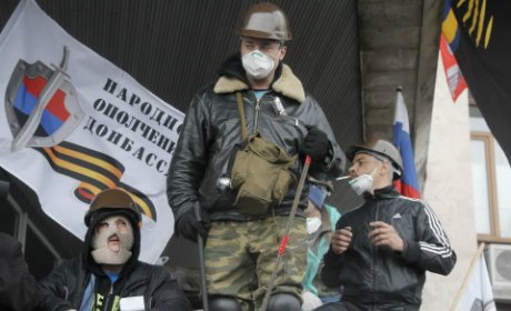Et d’abord l’emblème de ce groupe, en commençant par le drapeau : c’est celui de la république de Nouvelle-Russie, qui est en train de voir le jour avec l’intervention de l’armée russe. Un bout de terre qui a toujours été russophone (et toujours ukrainien, sans qu’il y ait jamais rien eu là de contradictoire), mais qui englobe les mines de Donetsk, avec un accès à la mer. Il s’agira d’une république fantoche, évidemment non reconnue par qui que ce soit en dehors de la Russie, mais qui existera — comme la république d’Abkhazie, créée exactement sur le même modèle : troubles sociaux qu’on fait dégénérer en troubles inter-ethniques (en jouant sur les extrêmes des deux bords, toujours prêts à en découdre, quelles que soient les conséquences), surgissement inopiné de milices populaires d’auto-défense, bientôt armées aussi bien que les forces régulières qui se dressent contre elles, puis beaucoup mieux — et intervention voilée (ou non) pour faire respecter le « droit humanitaire », ou « la vie des civils ». Et établissement, par la guerre, au prix de milliers de morts, d’une nouvelle frontière. Le but est de réduire au minimum l’indépendance potentielle des anciennes républiques soviétiques, et d’affirmer, concrètement, que la notion de « zone d’influence » ne vaut pas que pour les USA : il s’agit bien d’un retour à la guerre froide globale, au prix d’une série de « guerres chaudes » plus ou moins localisées. La guerre froide est un équilibre beaucoup plus rassurant que le chaos de la détente, et le climat de guerre extérieure permet aussi de museler l’opposition chez soi, au nom du crime de haute-trahison. D’ici peu, nous y viendrons en Russie.