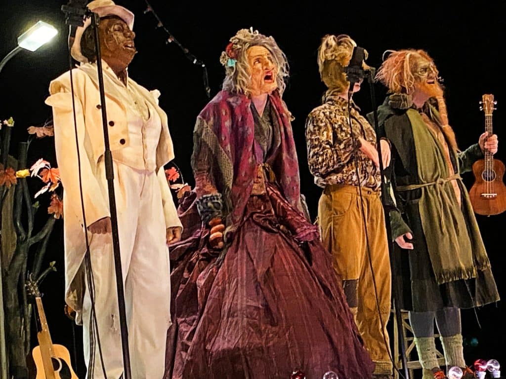 « On a créé ce spectacle il y a un peu plus d’un an », poursuit Nicolas. « De ce fait, l’ancien spectacle réunissait trois hommes et une femme, je me suis dit que le moteur de cette nouvelle création pourrait être les femmes. On a donc choisi trois femmes et un homme. Et on a raconté cette histoire de manière ludique, amusante. C’est Philippe Veret, le comptable de la Comédie de Picardie, qui a eu l’idée du chien Spinoza. Au début, il y avait le personnage d’une jeune femme. Il m’a dit que comme c’était un campement gitan avec un arbre à palabres qui raconte les saisons qui passent, il fallait un chien, car il y a toujours un chien dans les campements de gitans. J’ai trouvé que c’était une très bonne idée. » Nicolas Ducron a souvent été accueilli à la Comédie de Picardie avec les spectacles de sa compagnie H3P ; par ailleurs, il fait partie du groupe Les Fouteurs de Joie. A noter, le travail remarquable de Martha Roméro qui a confectionné les horribles masques et costumes bien déjantés. Quand ils déboulent sur scène, on se dit : « Mais qu’est-ce qu’ils sont laids ! » Puis, on écoute, et on se dit qu’il est beau, si beau, leur combat rien qu’avec des mots forts, poétiques et bouleversants. Tellement plus convaincants que les discours des politiques. Non, « On lâche rien ».