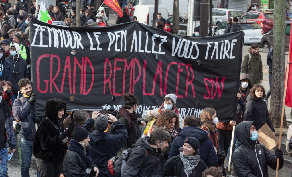 Il n’est pas non plus d’extrême droite. Il répète avec Jacques Bainville que « la France est plus qu’une race, c’est une nation ». L’extrême droite, qui est groupusculaire, proclame sur ses affiches que « la nation, c’est la race ». Elle est plus près de Maurras qui affirmait qu’un juif ne peut pas être Français, que de Bainville. La ferveur de ces milliers de Français qui placent tous leurs espoirs en Zemmour, le petit juif d’Algérie, lui oppose un démenti sans appel. L’extrême droite racialiste est en voie de disparition, mais pas le racisme, qui renaît en France à cause des indigénistes et des décoloniaux. Il y a un an ou deux, une fresque a été inaugurée à Cergy-Pontoise par ses élus pour dénoncer les violences policières et victimiser Adama Traoré, délinquant notoire qui a résisté à son arrestation alors qu’il n’avait pas la santé pour. Beaucoup ont protesté mais seule l’extrême droite, la vraie, s’est aventurée en territoire perdu pour la vandaliser. On peut le déplorer, mais sur ce coup-là, ce sont les racistes et les antisémites d’« Oeuvre française » (IL Faut une cap c’est un mouvement) qui ont sauvé l’honneur. Par ailleurs, même si leur conception ethnique de la nation est détestable, je reconnais plus de légitimité à un suprémaciste blanc sur la terre de ses ancêtres qu’à un type qui affirme que le voile est une tenue française ou que le prénom Mohamed est un prénom français.